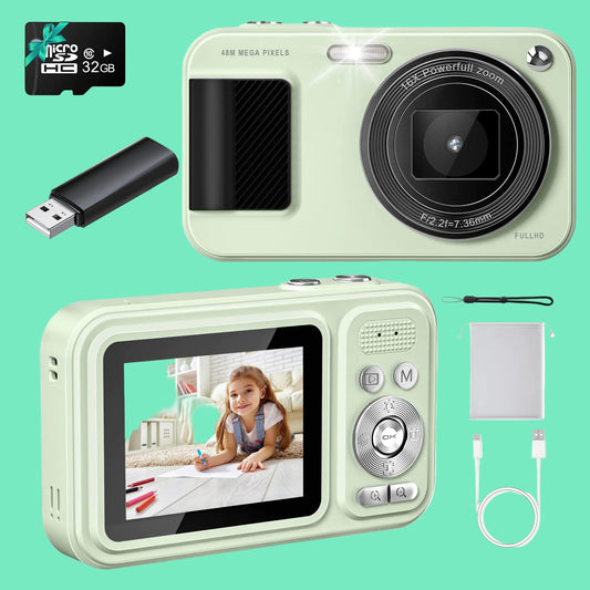 Digital Camera Student Cameras with 32GB Card. Autofocus 48MP Point and Shoot Digital Cameras 16X Zoom Anti-Shake Vlogging Camera Compact Small Cameras for Boys Girls Teenagers